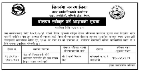 » बोलपत्र स्वीकृत गर्ने आशयको सूचना ।।।