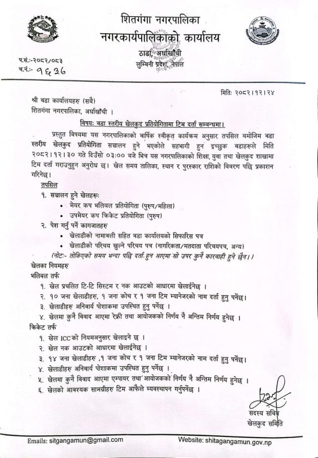 » वडा स्तरीय खेलकुद प्रतियोगितामा टिम दर्ता सम्बन्धमा ।।।
