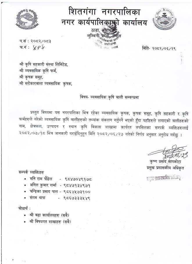 व्यवसायिक कृषि बाली सम्बन्धमा ।।।
