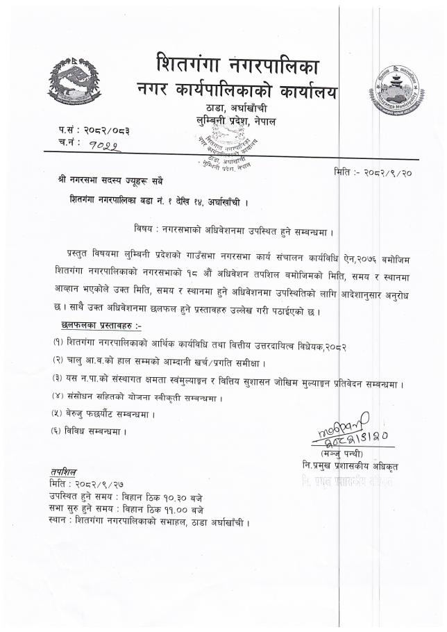 नगरसभाको अधिवेशनमा उपस्थित हुने सम्बन्धमा ।