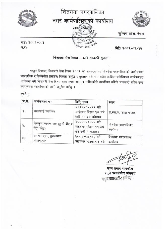 निजामती सेवा दिवस मनाउने सम्बन्धी सूचना ।।।