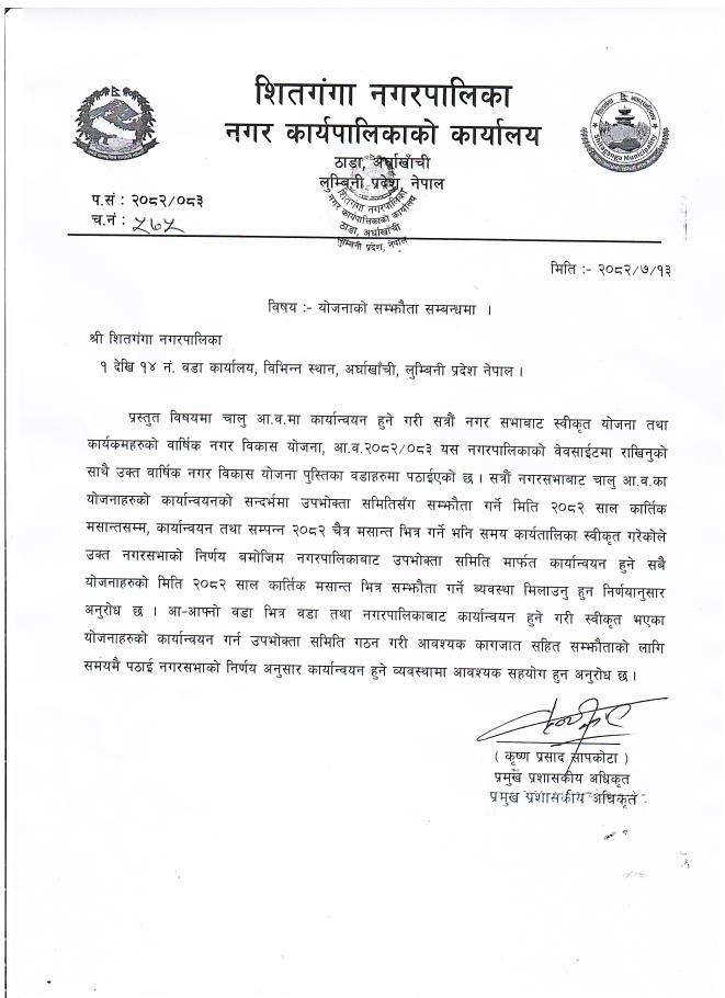 शितगंगा नगरपालिकाको उपभोक्ता समिति गठन, परिचालन तथा व्यवस्थापन कार्यविधि, २०८१