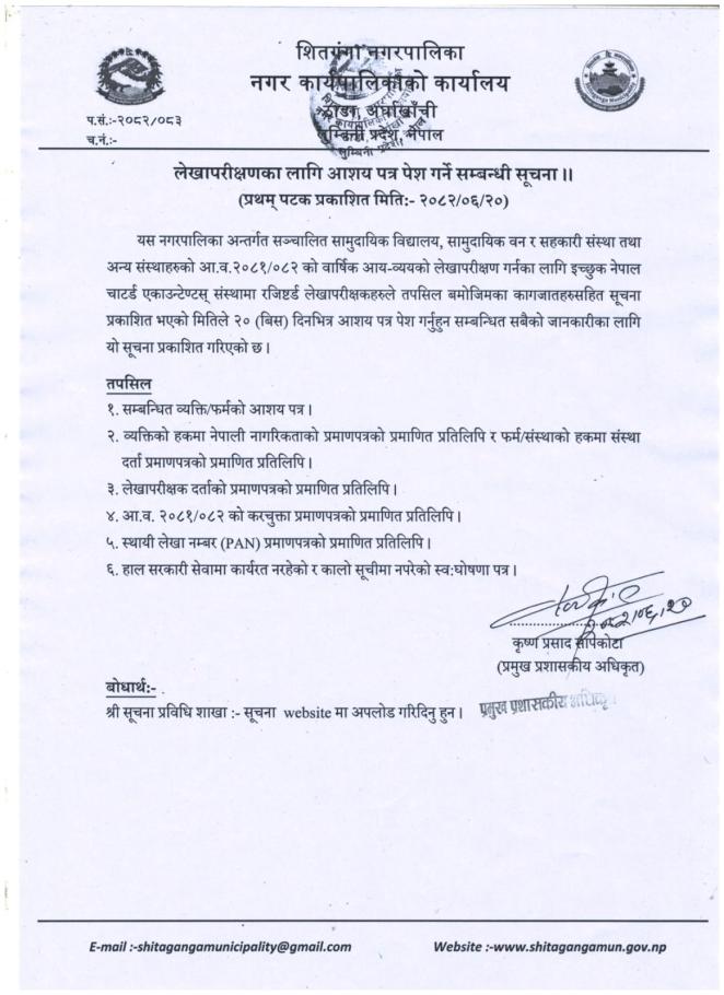 लेखापरिक्षणका लागि आशय पत्र पेश गर्ने सम्बन्धी सूचना ।।।