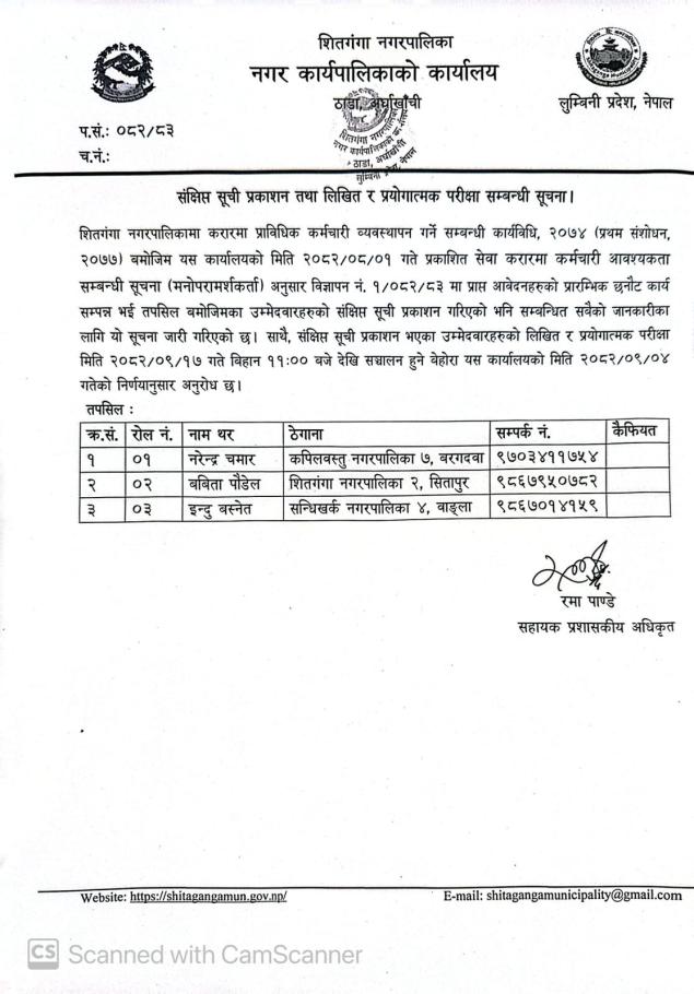 संक्षिप्त सूची प्रकाशन तथा लिखित र प्रयोगात्मक परीक्षा सम्बन्धी सूचना - मनोपरामर्शकर्ता ।।।