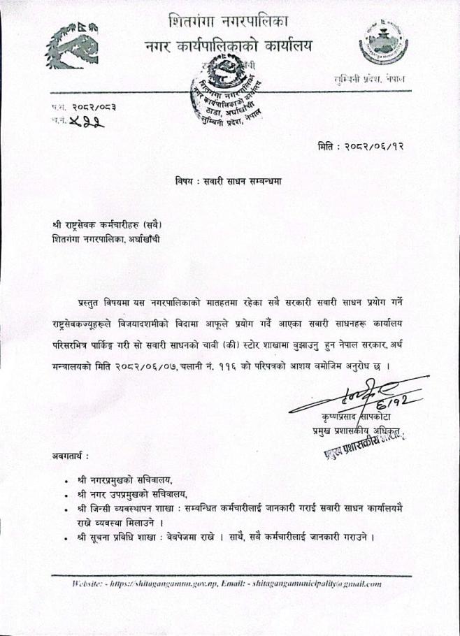 सवारी साधन सम्बन्धमा - श्री राष्ट्रसेवक कर्मचारीहरु (सबै)।।।