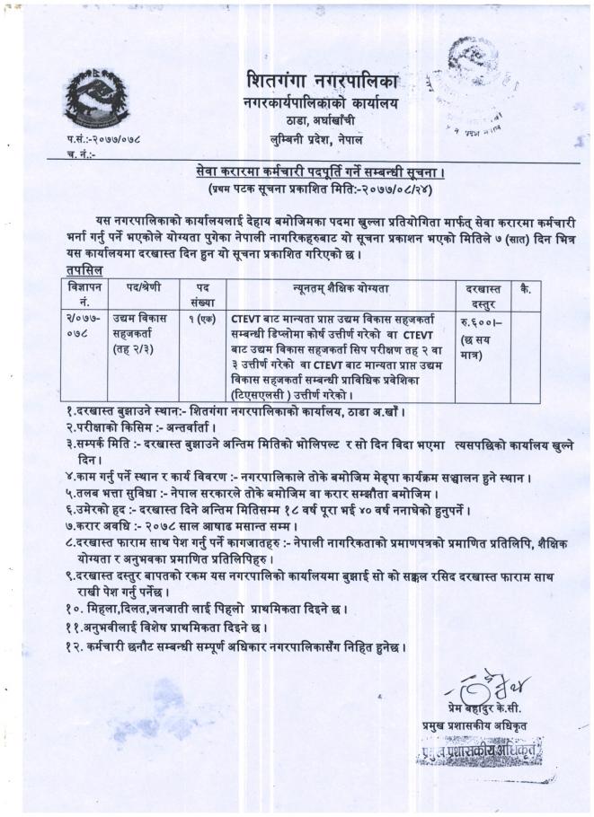 सेवा करारमा कर्मचारी पदपूर्ति गर्ने सम्बन्धी सूचना ।।।