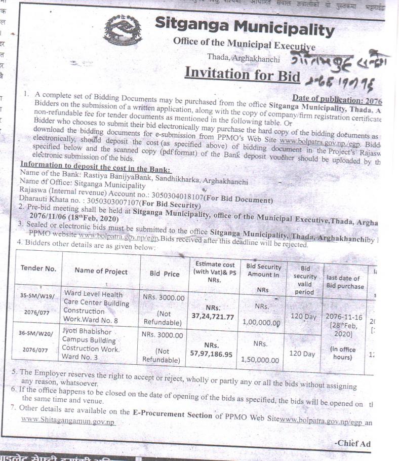 Invitation For Bids - बाेलपत्र आब्हान सम्बन्धी सुचना !!!